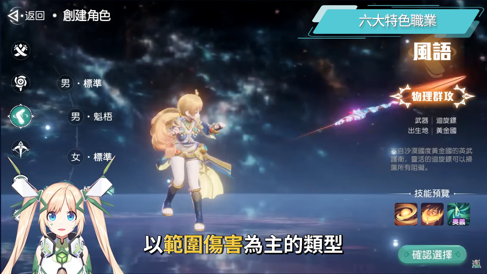 至於風語跟光羽則是本作的遠程職業,前者是使用迴旋鏢,以範圍傷害為主的類型。