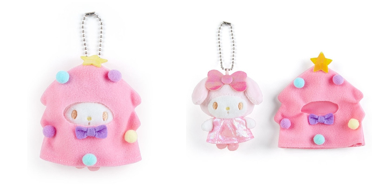 如果是喜愛低調,小露俏皮的你一定也會喜歡這款!尺寸小巧的絨毛玩偶吊鍊,三麗鷗明星各個穿上閃亮小洋裝,外層則是可以脫下的繽紛聖誕樹外衣,買一個吊飾讓你有兩種不同組合,甜美浪漫又可愛。