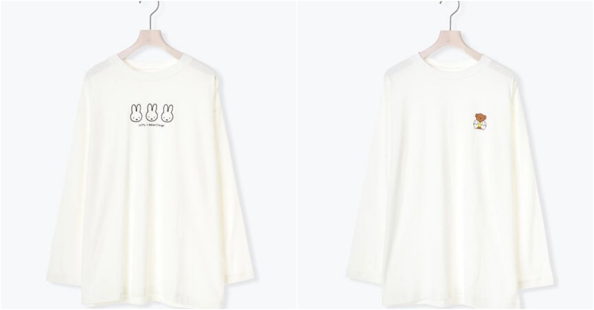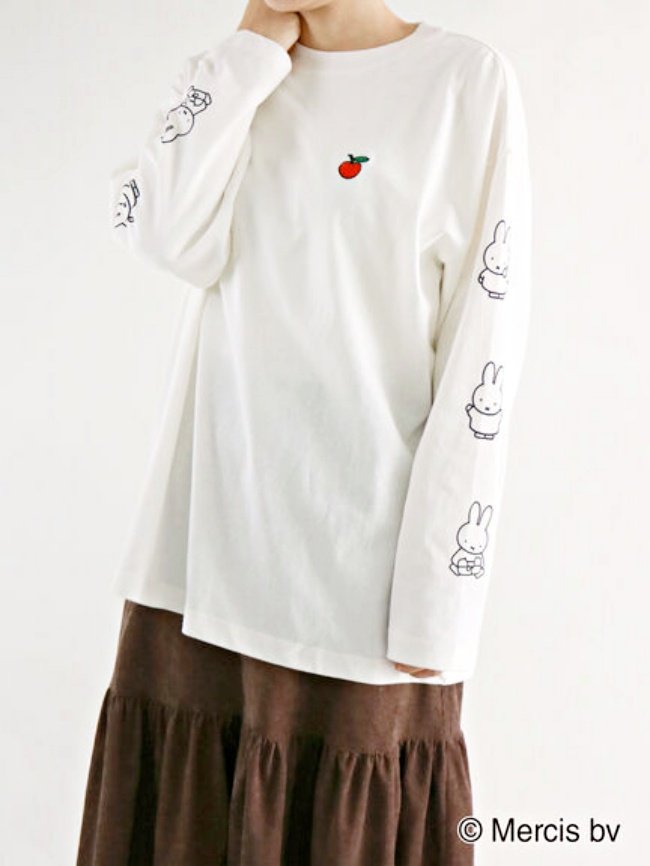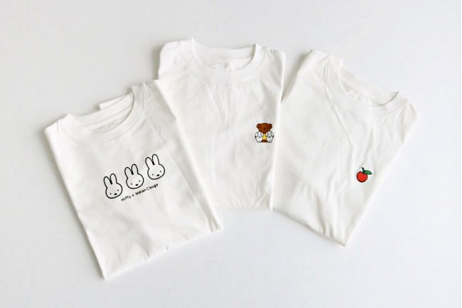 肩線較低的略寬鬆休閒版型…乍看百搭白色素T,上面可以發現低調出沒的米菲兔與朋友們!除了有在胸口印著三顆米菲兔的大頭的款式,波里斯熊也默默登場,另外還有一款前面裝飾可愛的蘋果一顆,看似超簡約,卻在袖子上藏亮點,大大的裝飾「3隻不同表情動作的兔兔」,隨著你的動作彷彿真的會動(笑)!