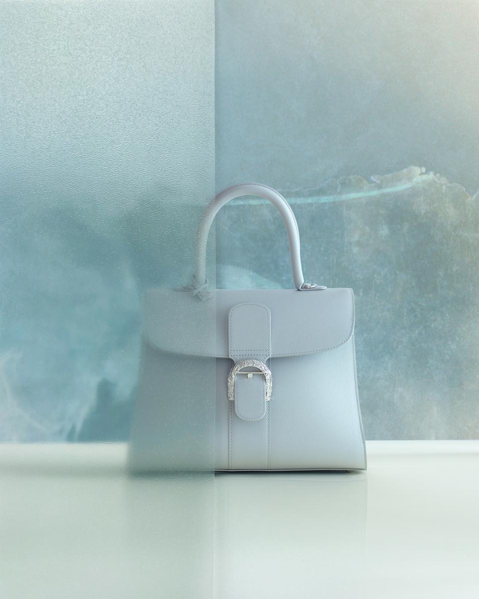 同樣也屬於最後篇章冬日之光的 Brillant MM Arctic Buckle 手提包,是以Delvaux品牌最經典的象牙白色為基底,並在鞣製皮革的過程中加入珍珠母貝粉,使包面會隨著光影的折射呈現獨特珠光效果,並且在經典馬蹄形飾扣上採用冰霜效果,完美體現出冬日之光迷人與精緻的篇章精神。