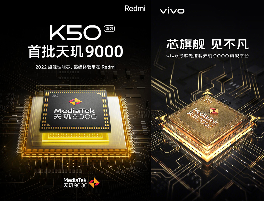 Redmi 官方也預告 Redmi K50 系列將於 2022 年推出, vivo 也預告會是優先搭載天機 9000 旗艦平台的一員。