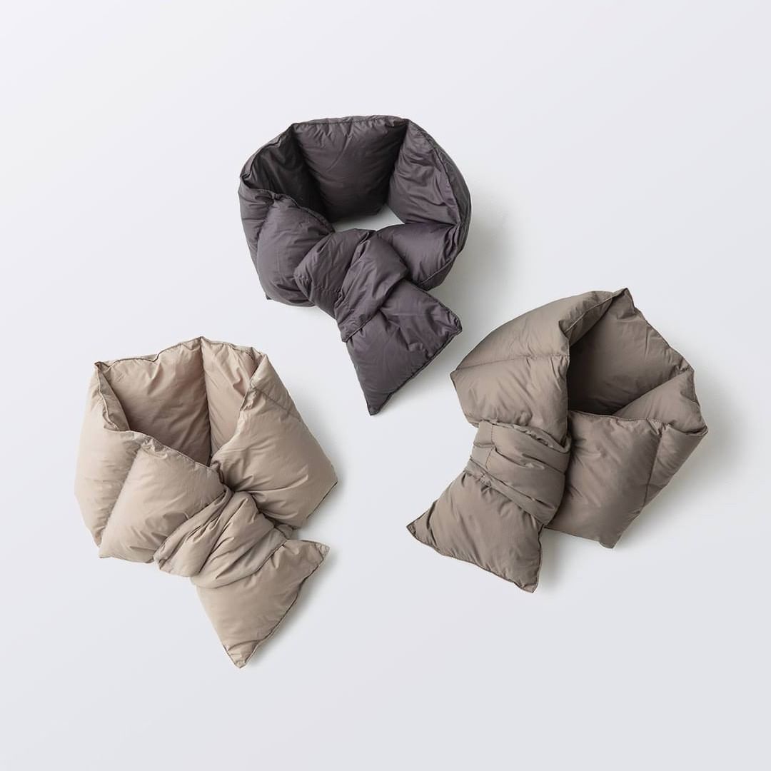 穿上主打輕盈、蓬鬆、保暖的羽絨服就像是被溫暖空氣包圍一樣,本季Muji將此概念延伸至可披在身上、蓋在膝蓋上或纏在腰上的羽絨披肩和羽絨圍巾,運用跟外套相同的面料創造出一致的保暖效果,唯一最大的不同就是他們更小巧,用不到的時候能捲成一團放入口袋,方便攜帶。
