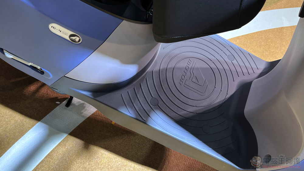 Ai-4 的外在採用了更抗刮傷更適合城市通勤使用的 PP 材質 - 看起來細緻度比 Gogoro VIVA 要更好,要形容的話,我覺得跟宏佳騰的 Ai-3 質感類似。前斜板下緣有點像裙擺的造型設計不僅可愛也切中女性車款的主題。在車身周遭的收邊都相當用心。盡可能採用不讓螺絲外露、一體設計保持無接合點的設計方法。甚至就連線組也盡量不外露都十分講究,就是希望將簡潔的概念盡可能落實。