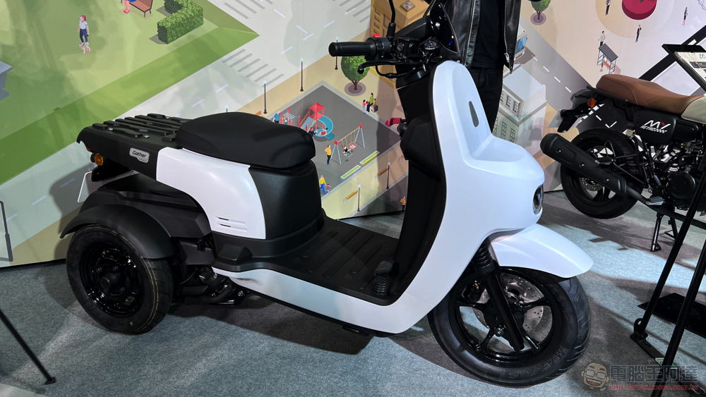 宏佳騰今天也揭露了他們默默超前部署,首度採水平展開燃油車與電動車版本開發工作的第一台雙生開發車款 Ai-2 Gather 的油車版本 - 畢竟電動車的版本之前已經發表過了。根據官方的說法,這樣的車款為了幫助企業用戶階段性轉換車隊為低污染電動車款。除了具備 Keyless 機能、CBS 三輪連煞系統,也具備駐車拉桿的設計(拉起時會進行限轉,藉此兼顧降低排放污染與快速啟動的實用性)。