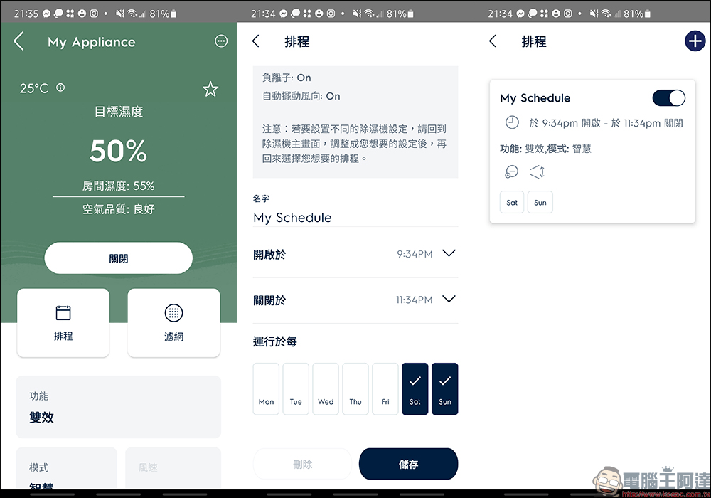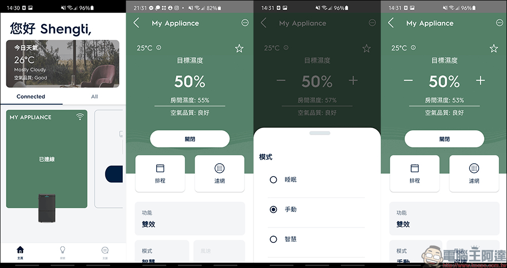 像是不同的模式、功能通通都能在 App 上設定,也能開關負離子、自動擺動風向、空氣品質指示燈。