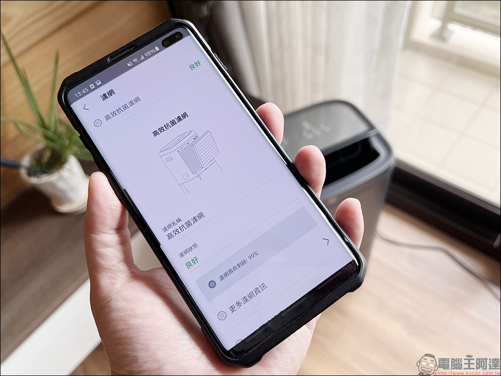 用戶還能隨時檢視濾網耗材的使用狀態和剩餘壽命,方便定期更換高效抗菌濾網讓機器保持在最佳的清淨能力。