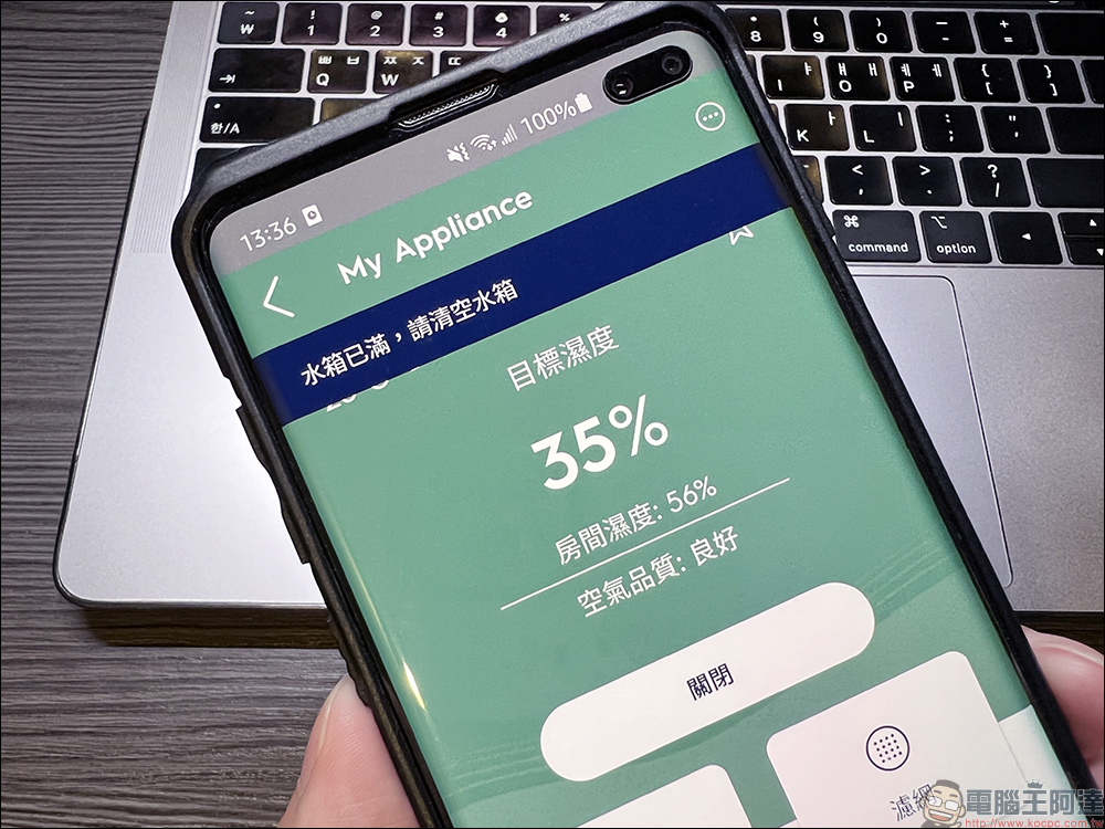 當水箱滿水時會在機身面板和 App 進行提醒。