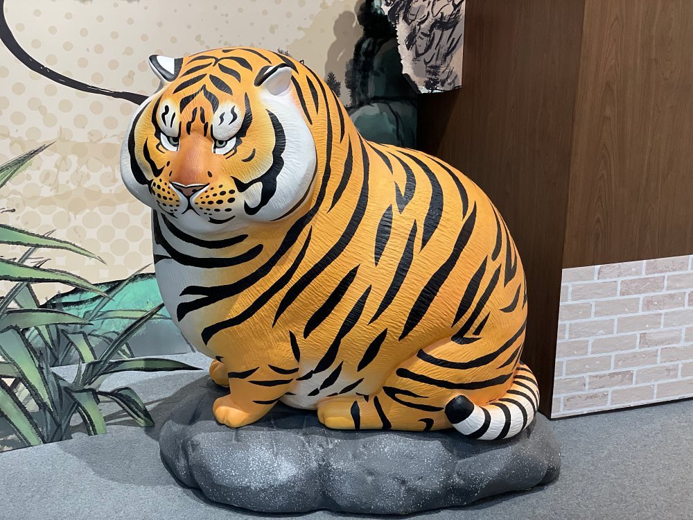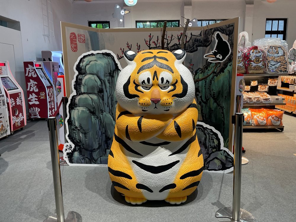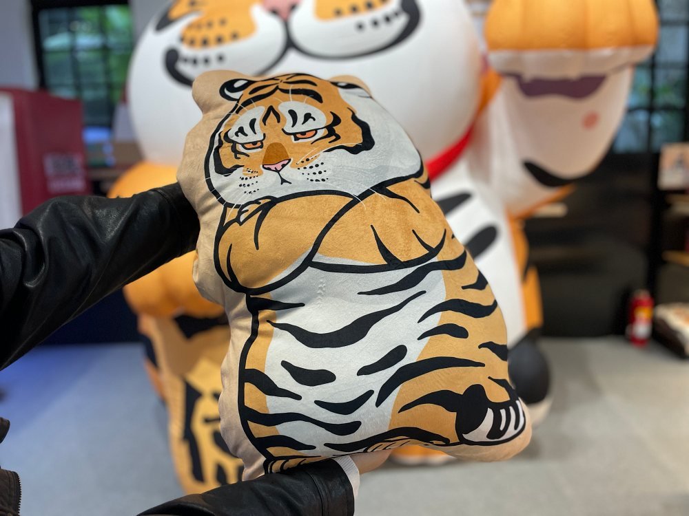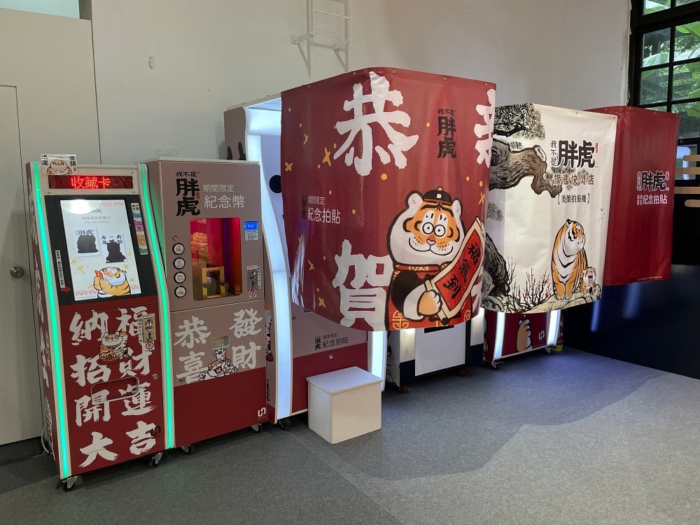 台北旗艦快閃店門口走山水畫風格,找來胖虎與小虎賣萌,而最大亮點就是全台最高2.5公尺猛虎氣偶!「胖虎」直接化身招財貓,在店內賣萌與迎賓,還有可愛的造型公仔可合照,貼心提醒大家攜帶行動電源,以免手機拍到沒電啊~(笑)