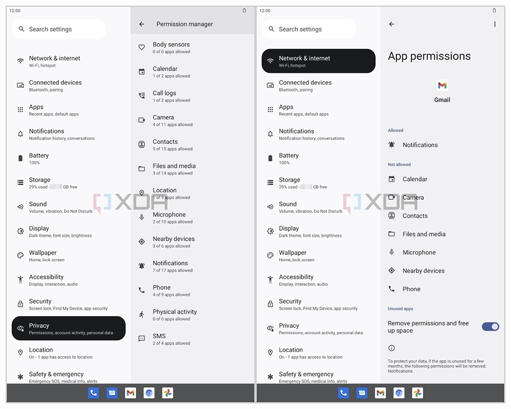 接著是通知管理功能。Google 目前正計劃把通知這件事情變得更容易管理操作,Android 13 的通知管理將會整合到應用權限中,也就是跟管理相機、麥克風等權限的選單: