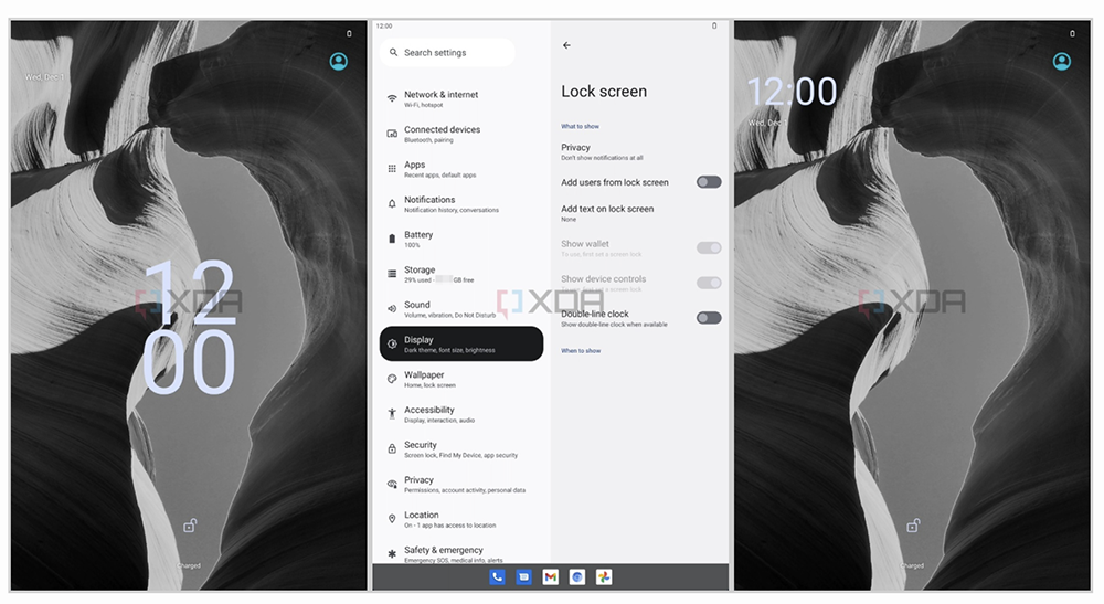 最後是鎖定螢幕,Android 13 鎖定螢幕時鐘將多了新的設定功能,使用者可以調整時中的顯示風格,如下圖原本位於中間,可以改成左上方顯示: