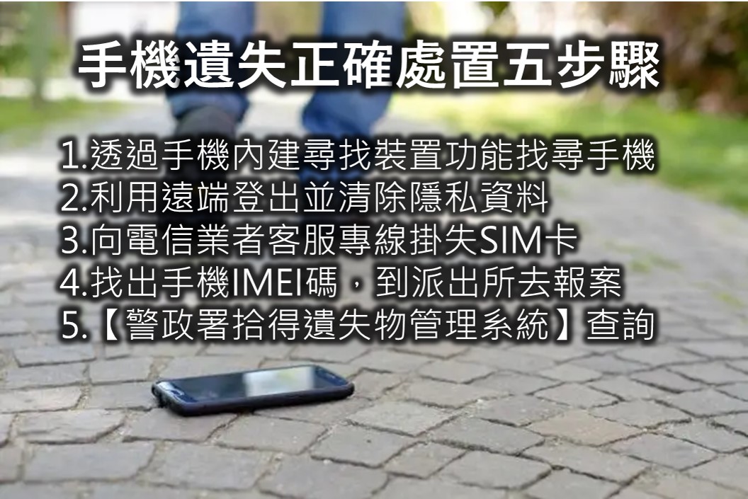 手機已是現代生活必需品,人人隨身攜帶下不慎在外遺失的新聞時有所聞,雖然智慧型手機可以透過內建的尋找手機功能增加找回手機的機率,但不是人人都能如此幸運找回手機。由於手機遺失不只可能被盜打,手機內的個人資料被看光光才是大惡夢,所以萬一手機不慎遺失如何正確處置非常重要。
