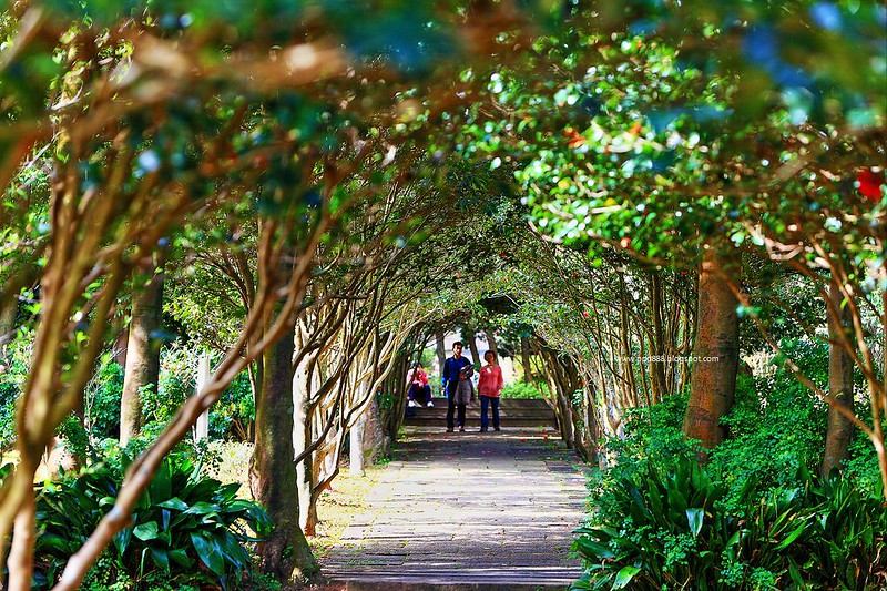 「士林官邸」曾是蔣中正的官邸,官邸公園周圍為福山山系所環抱,佔地 9.28 公頃,主要分為外花園、內花園、正房、蘭花的溫室盆栽區與玫瑰園等。都說這裡「春蘭、夏荷、秋菊、冬梅」,公園內的玫瑰園西側園路上就有一片成齡梅樹,據說早期為蔣中正指示栽培,與蔣宋美齡獨愛的玫瑰相互呼應;具中式庭園特色的志成公園內亦栽植數棵梅樹,與古意的窗格圍籬、園路相映襯,可乘坐在梅樹下休憩暢聊,欣賞秀麗景色。