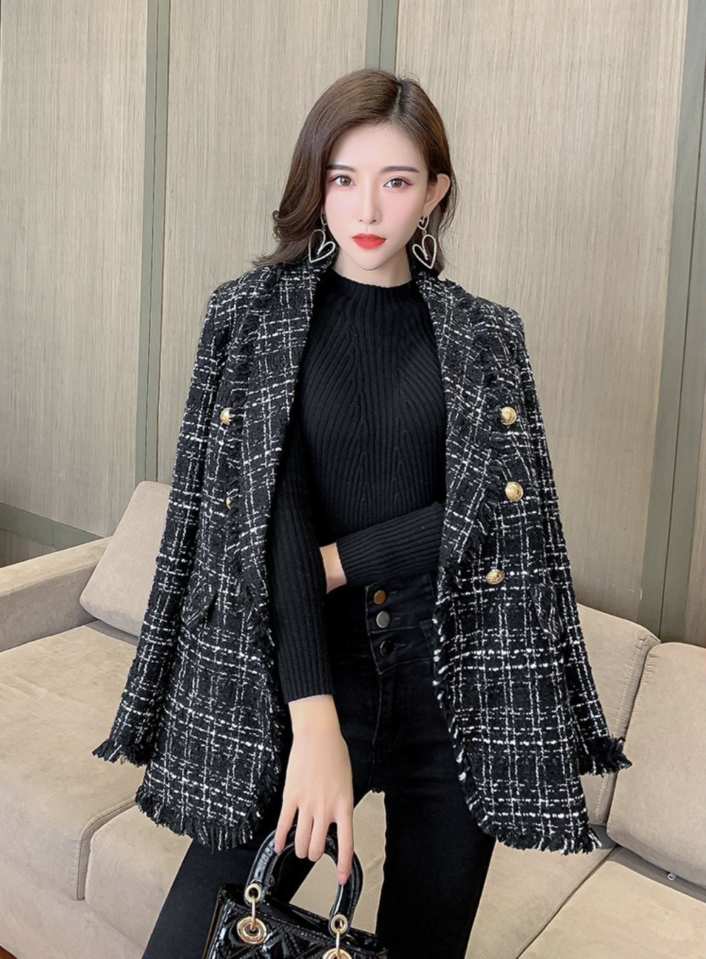 經典格紋百搭推薦3. 格子粗花呢流蘇小香風女外套