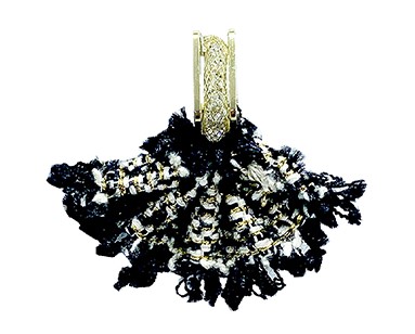 要完成時尚穿搭飾品配件不可少!就讓超好搭的毛呢小香風耳環,幫妳點綴一抹閃耀!有別於一般圓弧型或平面幾何的耳環,設計師利用花邊金絲毛呢布與鑲鏈晶縷衣兩種材料,做成不對稱的裙襬設計,客製設計款讓穿搭質感大提升,更顯與眾不同!