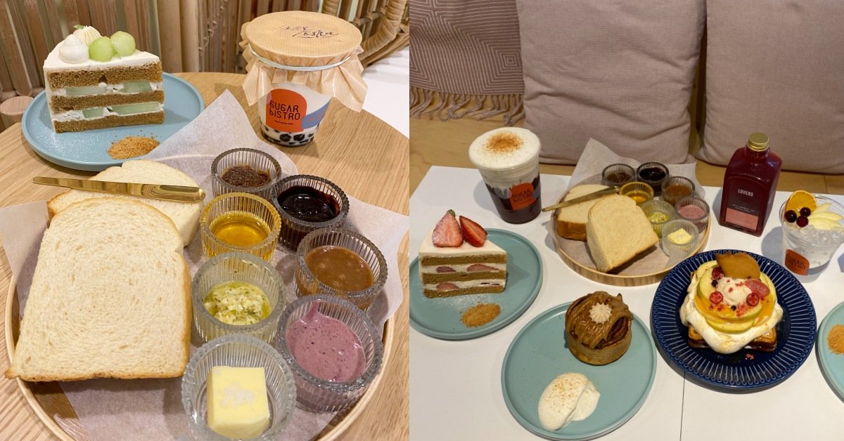 除了草莓棕糖戚風蛋糕、香水花茶、肉桂捲都是經典必吃之外,在食糖吧還可以吃到有別於「日食糖」與「小食糖」的限定甜點「棕櫚糖生吐司拼盤」,一份就有7款自製抹醬一次滿足,包括:塩之花奶油、棕櫚焦糖醬、 法芙娜可可、白巧克野莓、香草蒜奶油等,就連單吃生吐司也不無聊!(因為真的太好吃了)