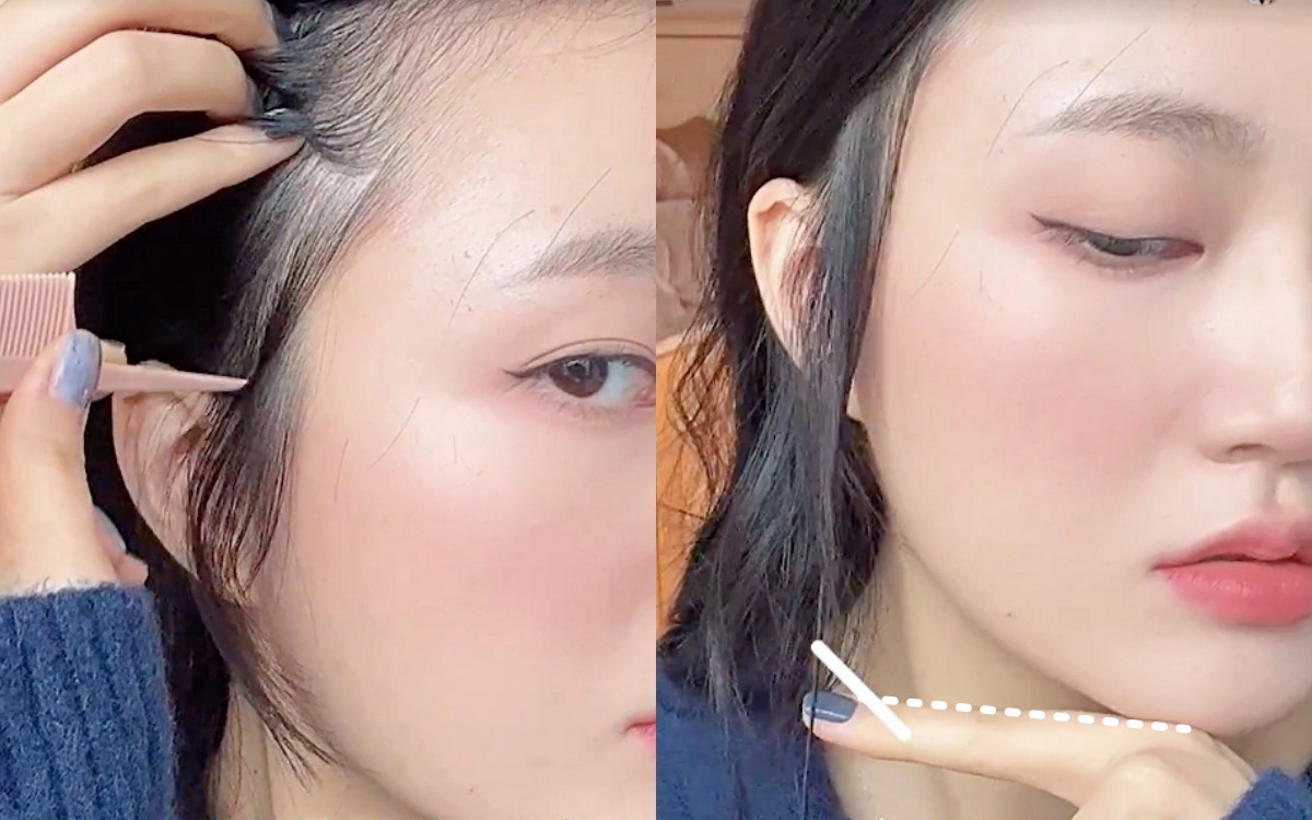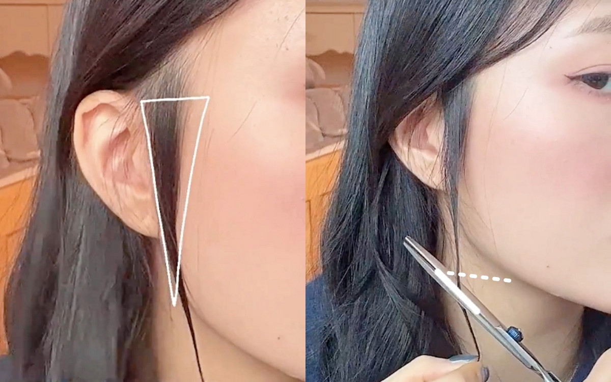 氛圍感碎髮瀏海剪法步驟2:耳側鬢角碎髮修剪