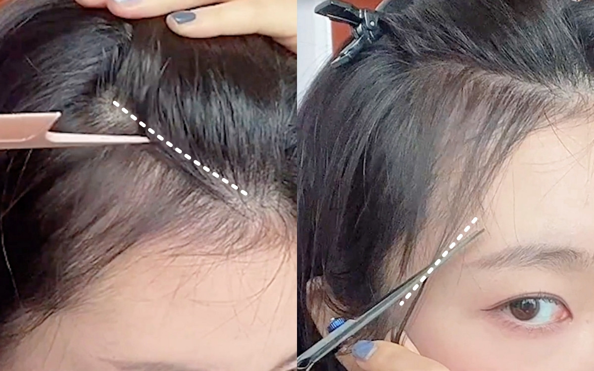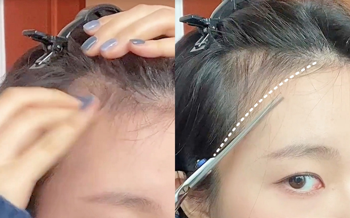 氛圍感碎髮瀏海剪法步驟1:剪出額頭髮際線碎髮