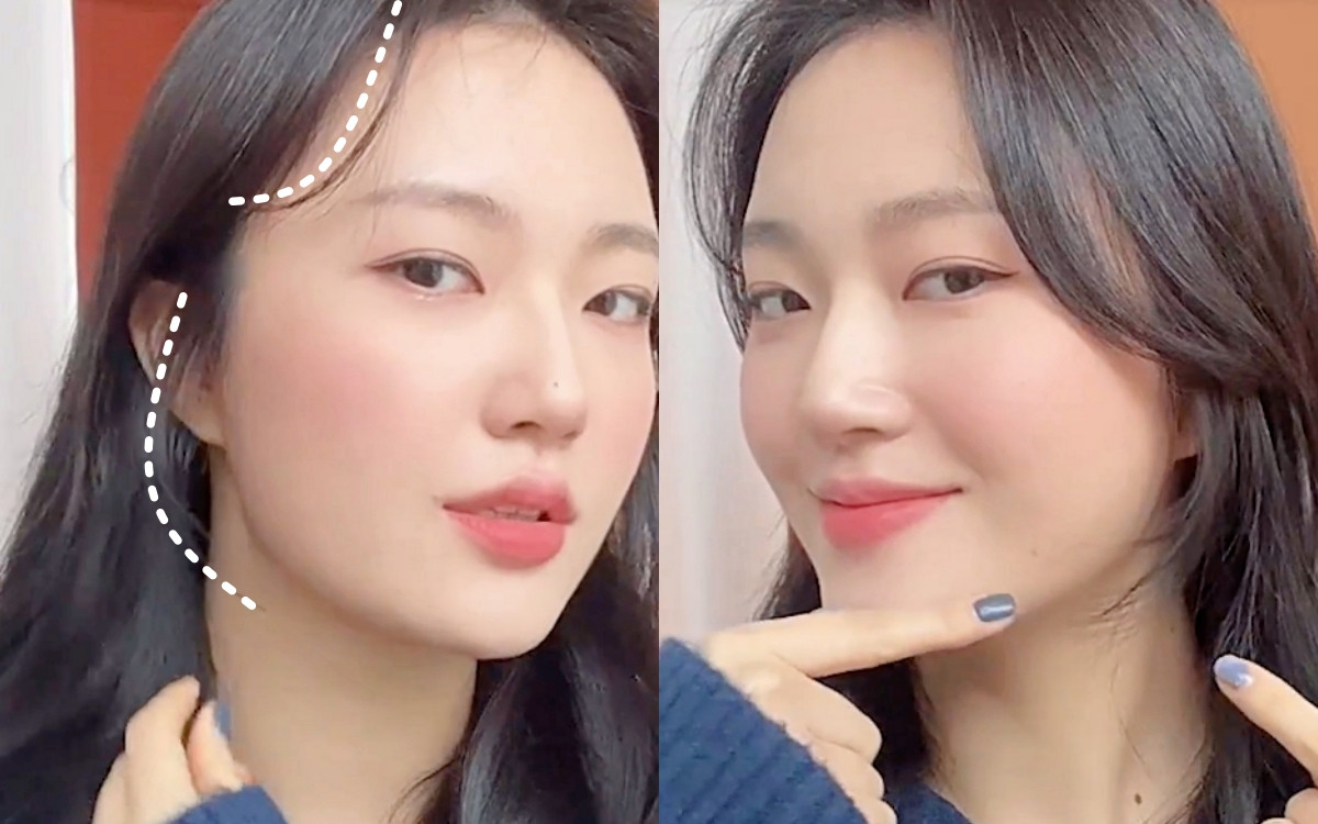 完成後,第一階段長度修飾額頭髮際線空洞,接著眉毛旁、顴骨上方的長度有修飾臉型,對比一下就可以發現臉型更加有修飾效果,臉型線條更飽滿精緻。