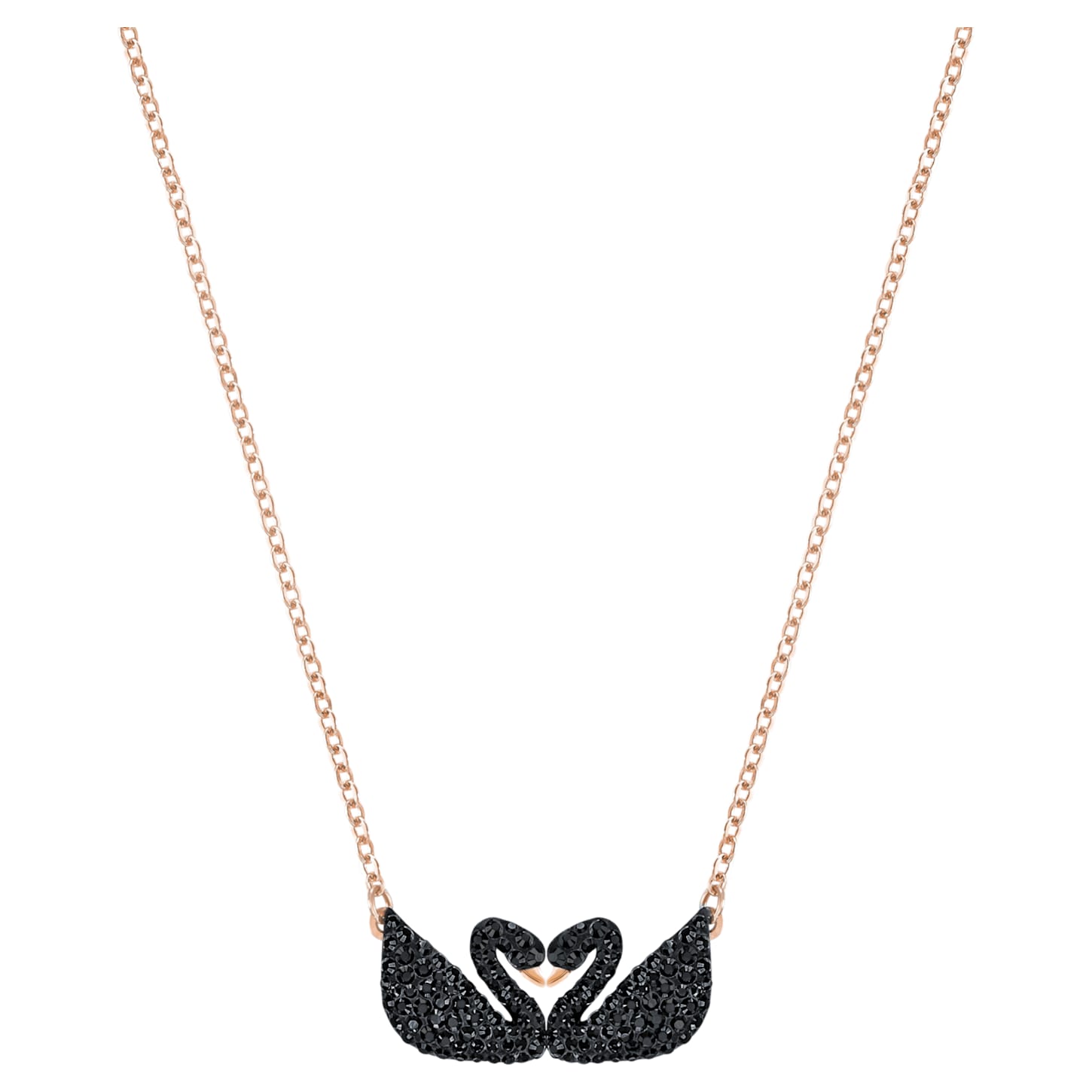 Swarovski Iconic Swan 項鏈, 天鵝, 黑色, 鍍玫瑰金色調