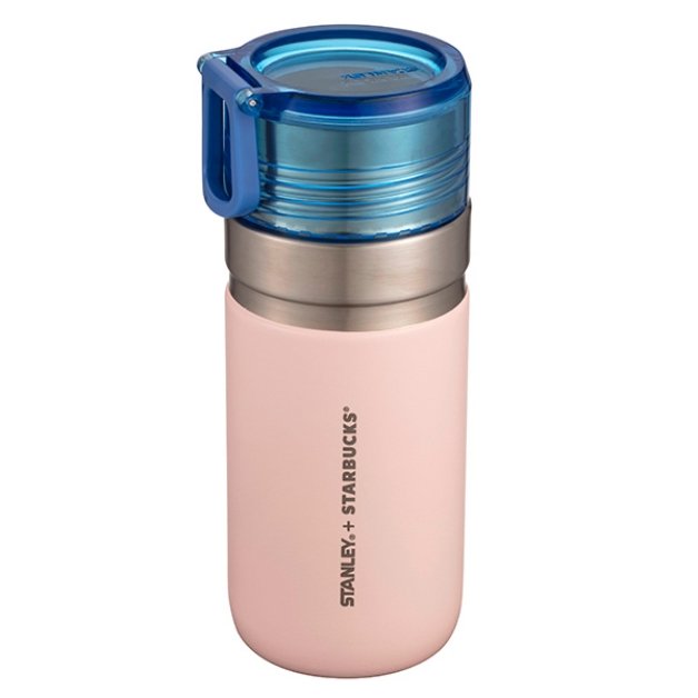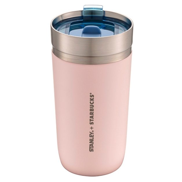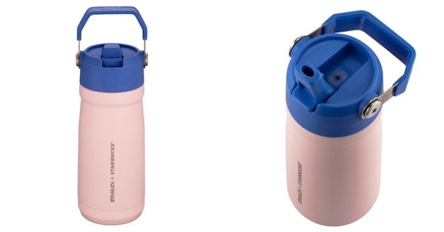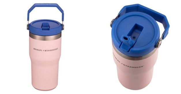 每每推出都造成搶購潮的「不鏽鋼吸管杯」,這次特別帶來「17OZ」和「20OZ」兩種容量,上方使用「海藍色」,杯身則使用大面積的煙粉色,搭配「STANLEY+STARBUCKS」銀色英文字,優雅又時尚,特別之處在於還有提把方便攜帶!