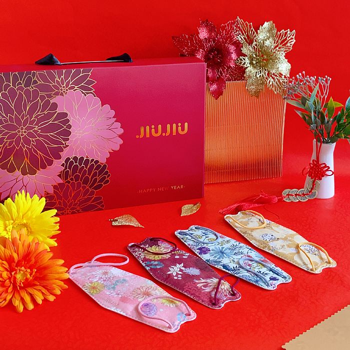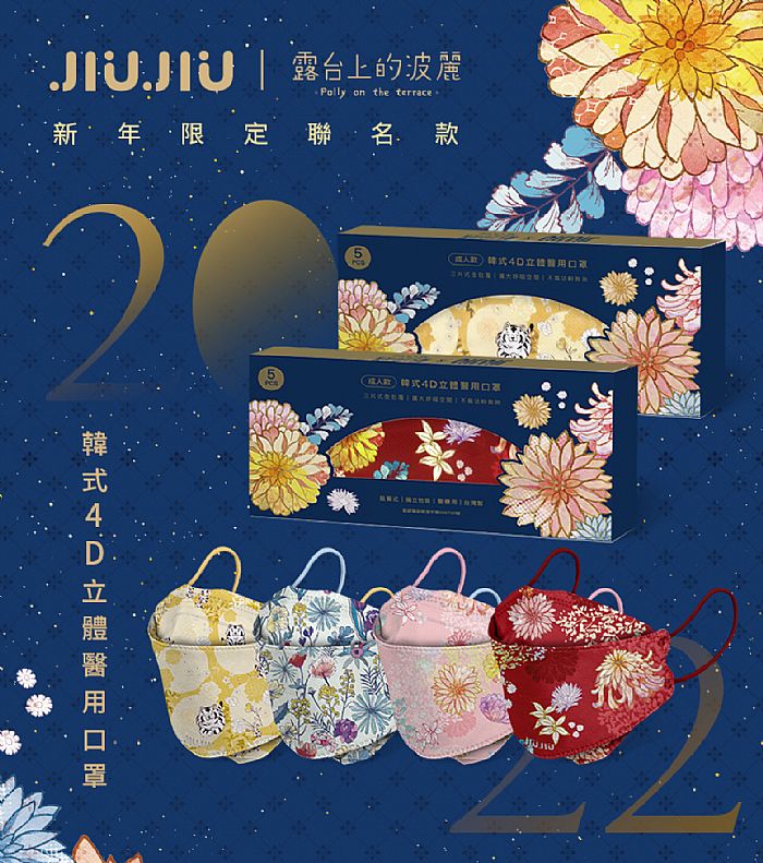 親親JIUJIUx露台上的波麗新春口罩除了禮盒款之外,也有單盒販售的喔!深藍色設計搭配露台上的波麗專屬花卉,大方亮麗卻又不失高雅,4D立體醫用口罩不僅好呼吸大空間,還能夠減少口罩與臉部的摩擦,減少長痘機率。