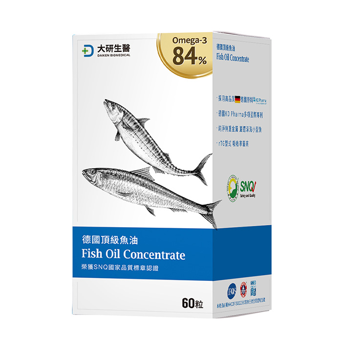現代人每天長時間接觸 3C 產品,需要格外注重眼睛保養,這時候魚油就派上用場啦!魚油不僅能保養眼睛,還有助於維持心情愉悅。編輯推薦大研生醫德國頂級魚油,這款魚油與德國KD Pharma大廠聯手打造,採用100%純魚油(Omega 3 脂肪酸高達84%以上高濃度魚油),且是吸收率最高的rTG型式,能有效促進新陳代謝,守護你我的健康!
