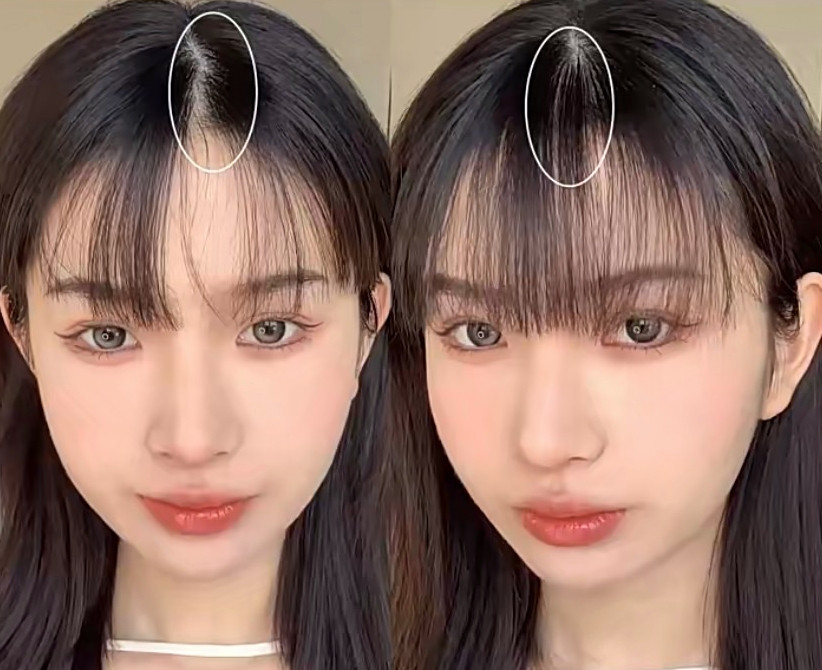 基本上完成前面的步驟,原本瀏海分岔的空洞就會消失了,如果覺得瀏海太筆直,也可以使用髮捲搭配吹風機加熱,讓瀏海有一個微彎弧度,會看起來更活潑減喲!