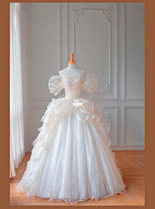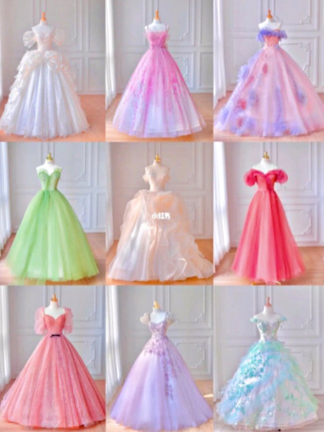 仙杜瑞拉款式採用一襲「清新淺藍」為主色系,澎袖、心型低領以及大澎裙襬直接完美實體化,只在細節處增加蕾絲拼接領、蝴蝶結,還原度超高!還有一套結合閃耀亮片、純白網紗,走動之間就像被施了魔法閃閃發光,奇幻又唯美~