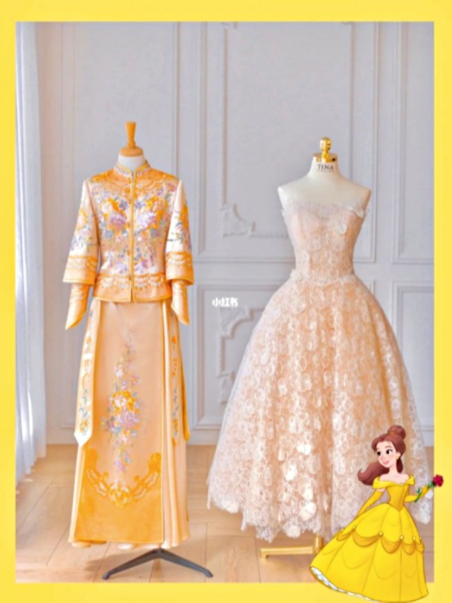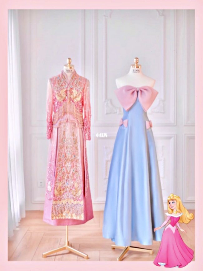 親切又可愛的神仙教母,拿出魔杖一揮…南瓜瞬間變成豪華馬車、小老鼠化身馬匹,天藍色的禮服以及玻璃鞋也憑空出現,這個《灰姑娘》中的經典橋段,也能發生在你身上(笑),中國婚紗公司TINA BRIDAL DESIGN以4位迪士尼公主為靈感,打造多套「公主御用婚紗」,甚至還有同系列「中式婚禮龍鳳掛」(笑),獨特設計在小紅書上反應超熱烈。