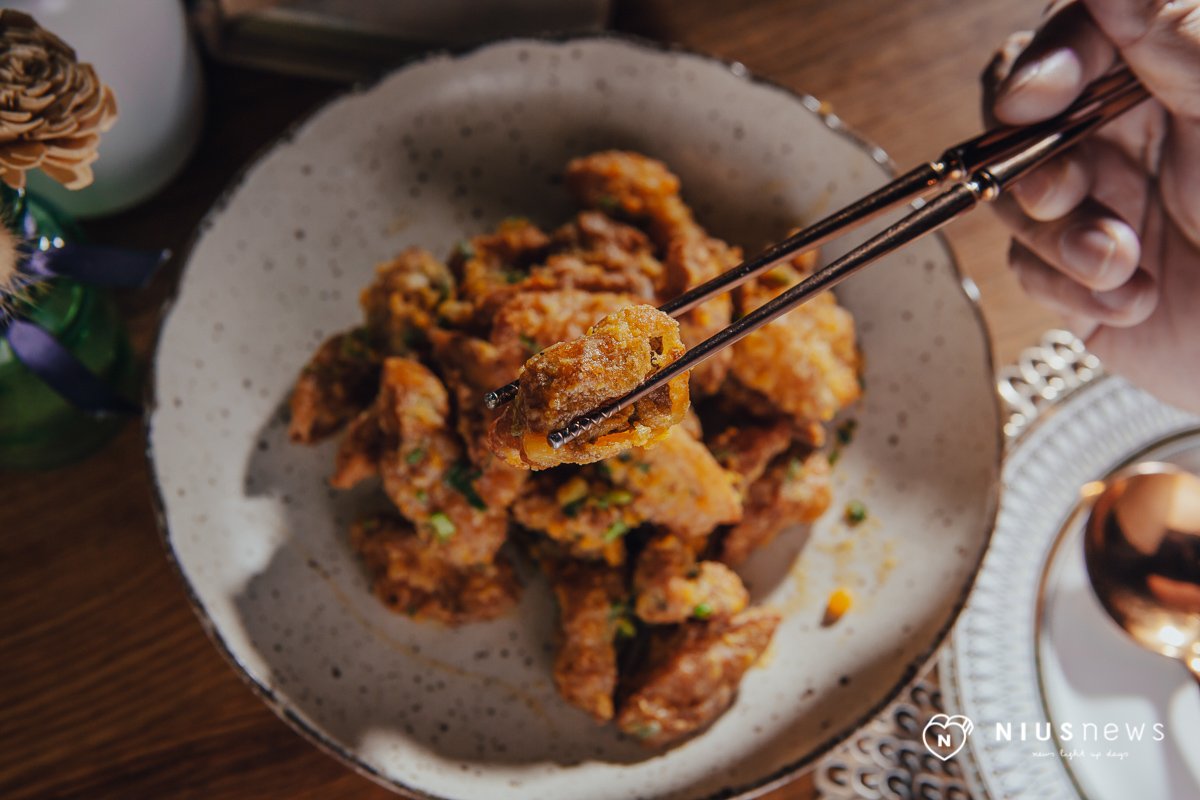 先從不辣的「金沙杏鮑菇」開始介紹起!酥炸爽脆杏鮑菇,一口咬下還會噴汁呢,甘甜的滋味融合厚實的金沙,鮮香鹹的滋味充斥著整個口腔,只要夾2塊都可以搭配一整碗白飯了!