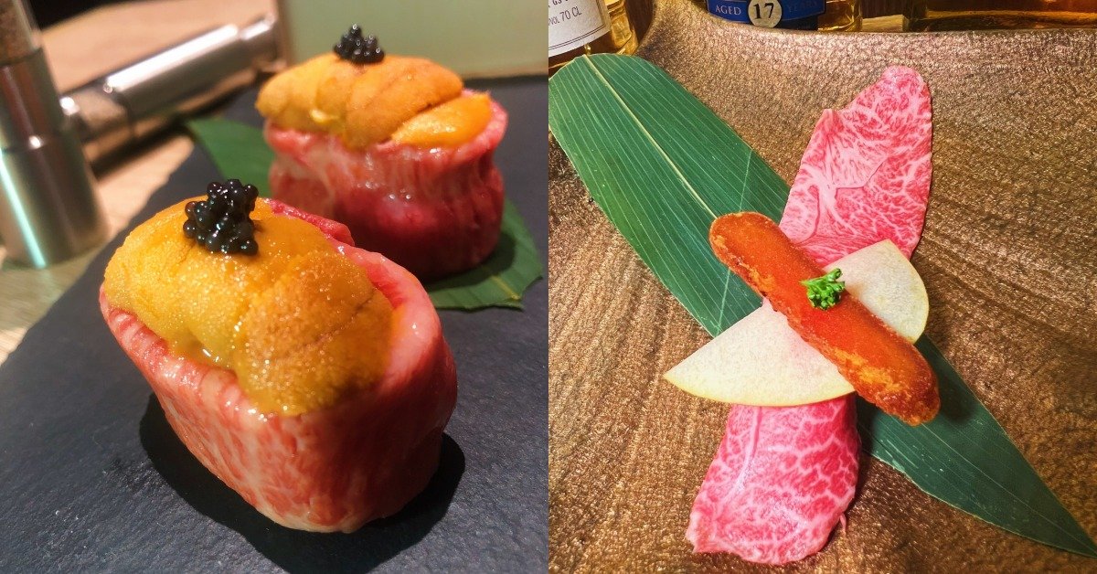 除了燒肉之外,來店必點「和牛三重奏」!使用日本A5和牛薄切板腱,搭配在地烏魚子、日本北海道海膽製成「握壽司」與「軍艦」,並以日本A5和牛薄切紐約客搭上加拿大鴨肝、瑞牧冷藏土雞蛋與醬汁製成「月間紐約客佐鴨肝」,三重奢華享受超幸福!