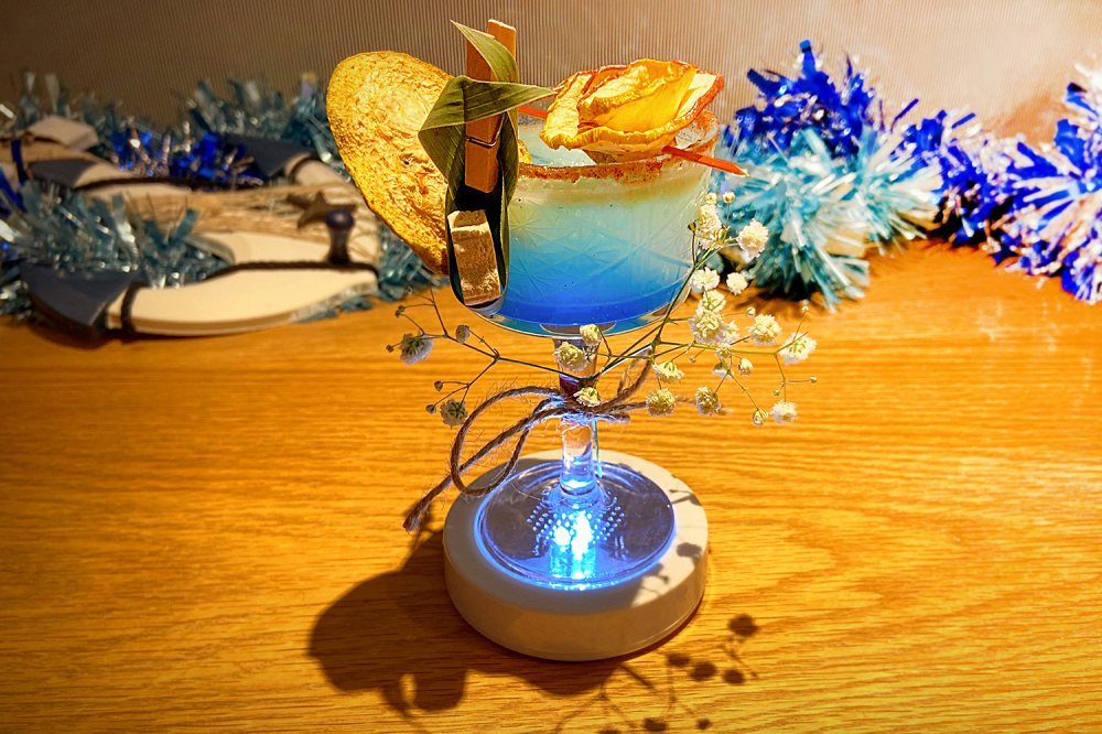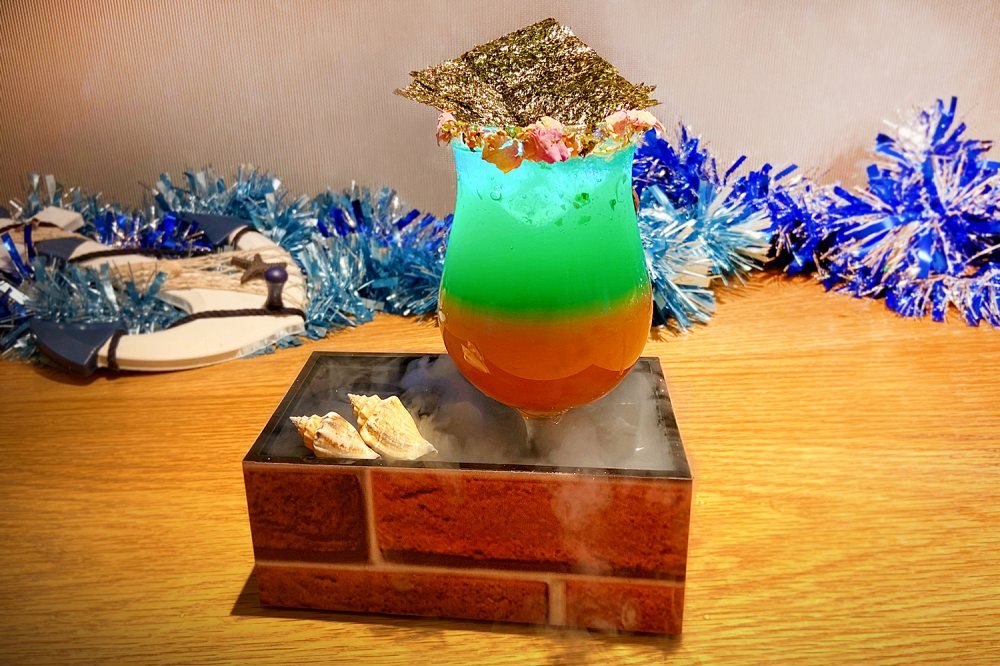 「星海」使用經典調酒「嚴狗 Salty dog」為靈感,搭配蘭姆酒、葡萄柚、玫瑰海鹽與海苔,呈現「大船入港」的絕代風華感;「海砂」則以芭樂汁帶出西部海岸的沙灘景象,加入代表「海水鹹度」的梅粉,兩杯都是夢幻必拍!