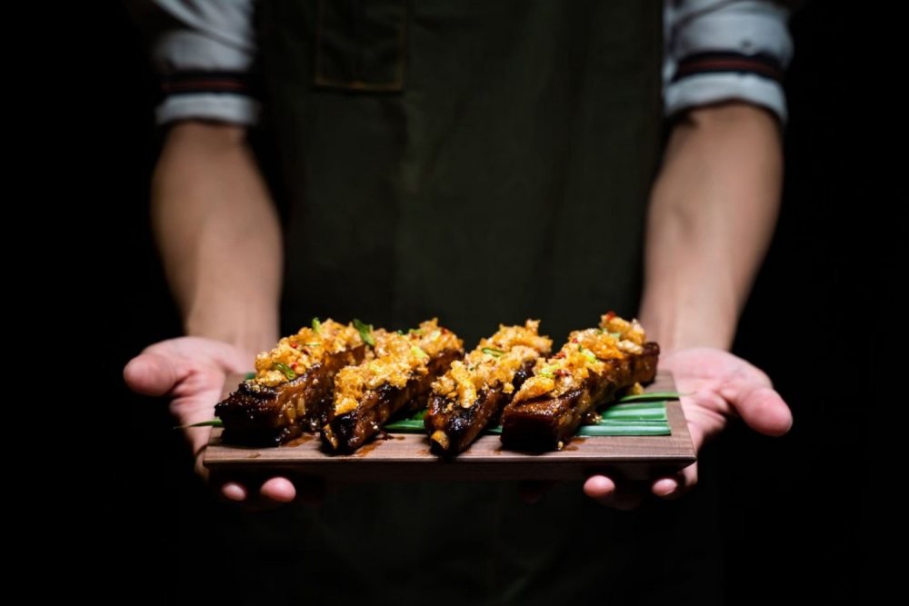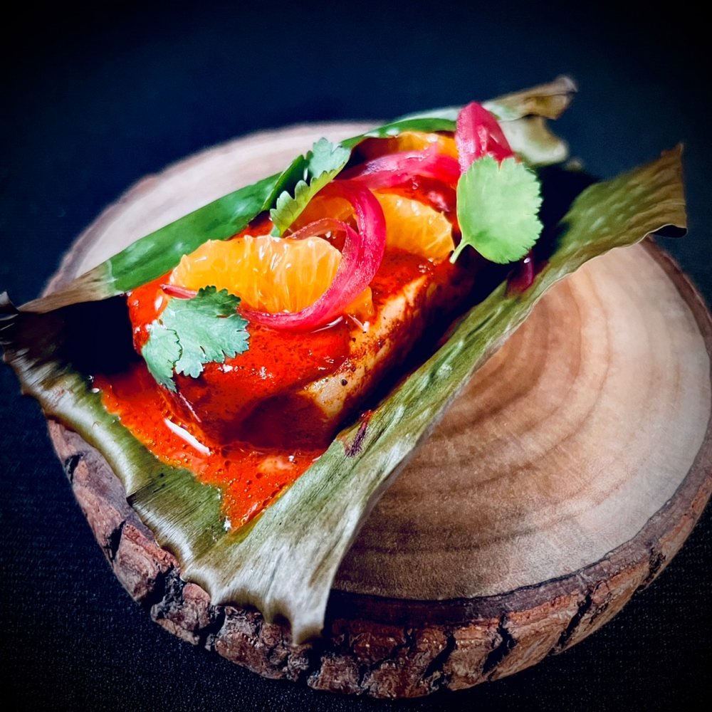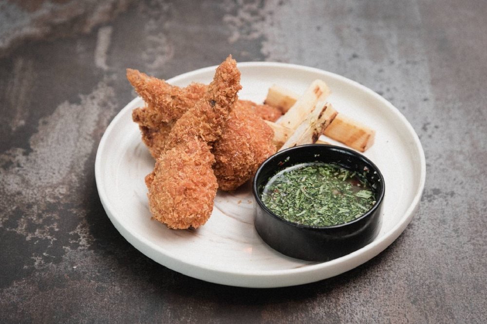 招牌餐點「南投放牧黑豬戰斧佐柚子胡椒雞汁」,特別搭配西班牙賽拉諾洋芋千層,肉質鮮甜、口感多層次;而「酥炸雞翅鑲蝦漿」也不容錯過,雞翅中灌入新鮮蝦泥,推薦先嚐原味,接著沾少許泰式魚露醬,酸甜滋味讓人難忘啊~