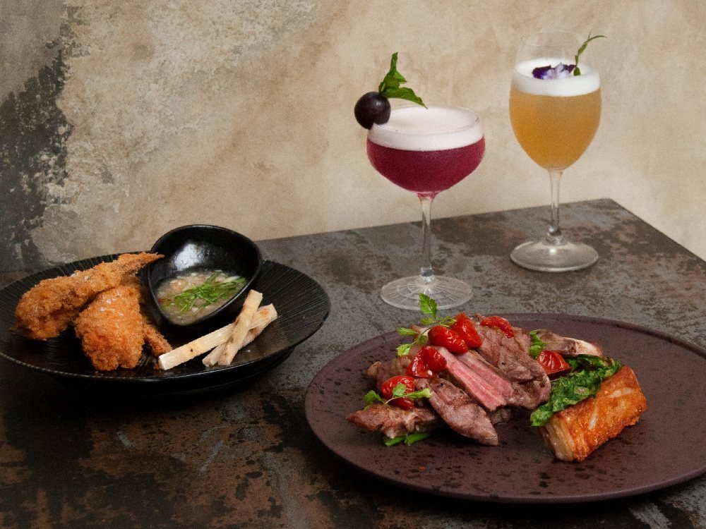 店內提供各種調酒、紅白酒與啤酒,也有義大利麵、牛排、古巴三明治等鹹食。妞編輯特推「北港花生 糯米 炸豬皮」給各位,這道菜以台灣特色小吃「豬血糕」為靈感,以酥炸豬皮搭配使用北港花生製成的辣醬,口感酥脆、辣而不嗆口。