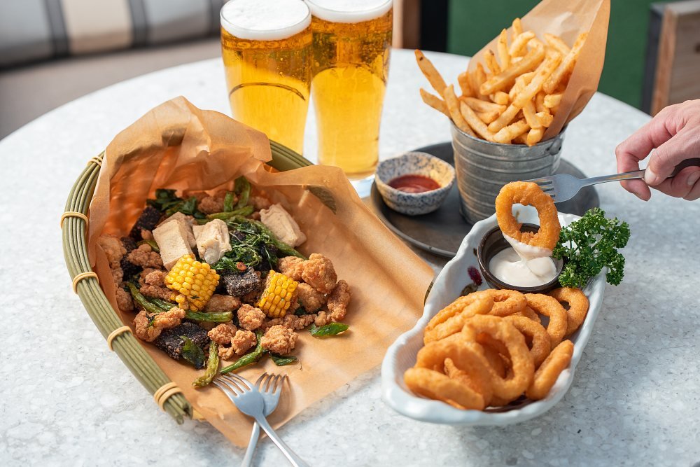 除了各式酒類,店內也有提供鹹食,其中不可錯過炸物「綜合雞翅」!使用獨家配方醃製中節翅,再撒上Taco粉、咖哩辛香料與酸甜烤肉醬,豐富香氣與層次感讓人吮指回香。