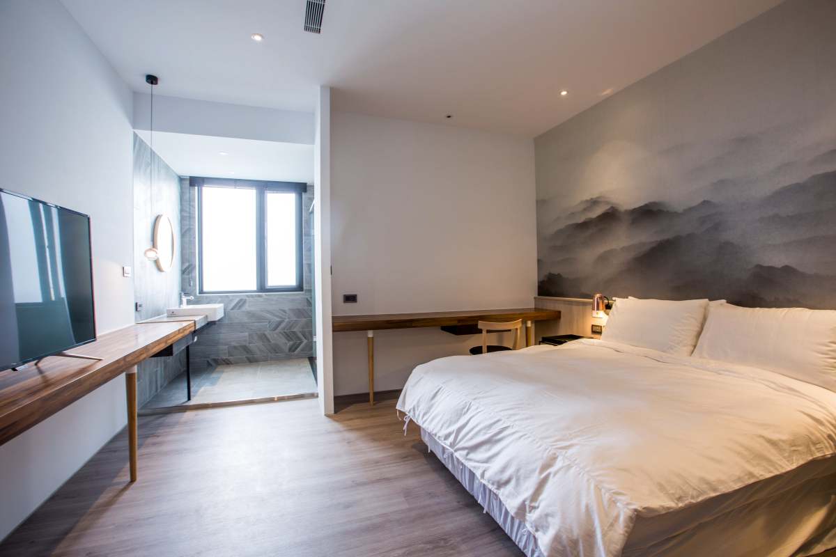四層樓高的建築,整體色調以黑色、金色為主,紅磚外牆和櫃檯的大理石、銅件的結合,呈現低調奢華的復古感受。分別有兩人房、三人房、 四人房,房內除了台灣職人低溫特製的手工艾草平安皂,還有義大利原裝進口的沐浴品牌,能夠潔淨身心。