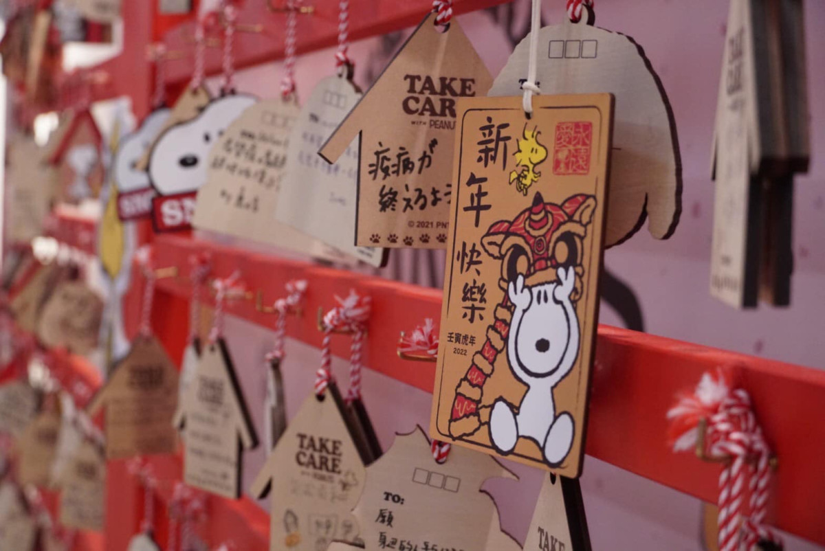 史努比巡迴展中一定不乏許多精美的打卡牆,PEANUTS花生漫畫裡的角色躍上牆,與史努比的朋友們一起沉靜在歡樂的氣氛中,這次最特別的是展覽其中適逢新年,裡頭還有一面日本新年會用來許願祈求好運的繪馬牆,展覽中還特別設立了新年氣氛滿滿的過年打卡牆,讓史努比陪你歡樂過新年!