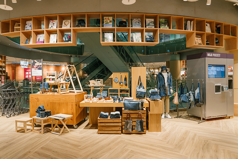 不只要好買、好逛,無印良品更在店內增設「Muji圖書館」。現場除了以基本生活需求的食衣住行育樂選書之外,更以「聯合國永續發展目標SDGs」為主軸,並運用現場的環形空間設計,將書架以立地與吊掛形式陳列,提供近5,000本書籍。童裝區也特地設置童書專區,並採用階梯設計方便休憩與閱讀,爸媽逛街小孩不再無聊了。