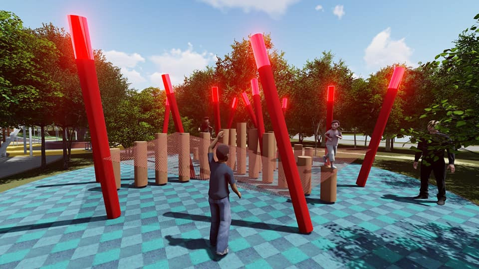 遊戲場就在福安宮後方,面積近5,000平方公尺,在植栽中打造洋蔥大福溜滑梯、大吉大利籤詩橋、祈福廣場、親子同樂鞦韆、蟲洞攀爬網、勇者闖關遊戲區、大樹休憩亭、環形活動空間、高空步道等遊憩設施,結合落山風洋蔥、福安宮信仰還有綠豆蒜名產,從幼到老都能進來玩。
