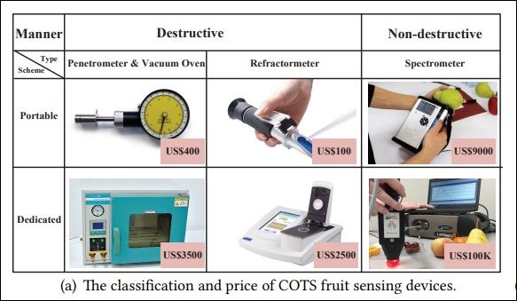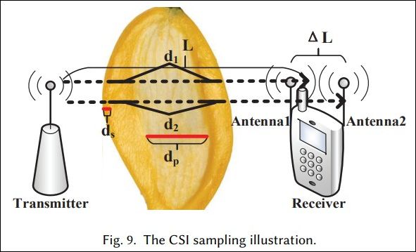 [caption id="attachment_424630" align="alignnone" width="1000"]Wi-Fruit 技術是使用 Wi-Fi 的通道狀態資訊(Channel. State Information,簡稱 CSI)作為基礎,這項技術的優勢,除了在於不需要切開水果就能了解內部狀況外,還有價格便宜的優點。一般來說,水果內的含水量與可溶性固體含量(Soluble Solids Content,簡稱 SSC),都需要分別使用滲透儀、真空爐,透過加熱和乾燥來進行測量。糖份則透過折射儀以光譜折射計算,這些方法的通常成本昂貴、且須破壞水果本體才能測量,此外還需要一個環境嚴格受控的實驗室才能施作。即便技術進步到可以做出便攜且便宜的機器,但這樣的檢測機器對於皮厚的水果無法做出精確的判斷。