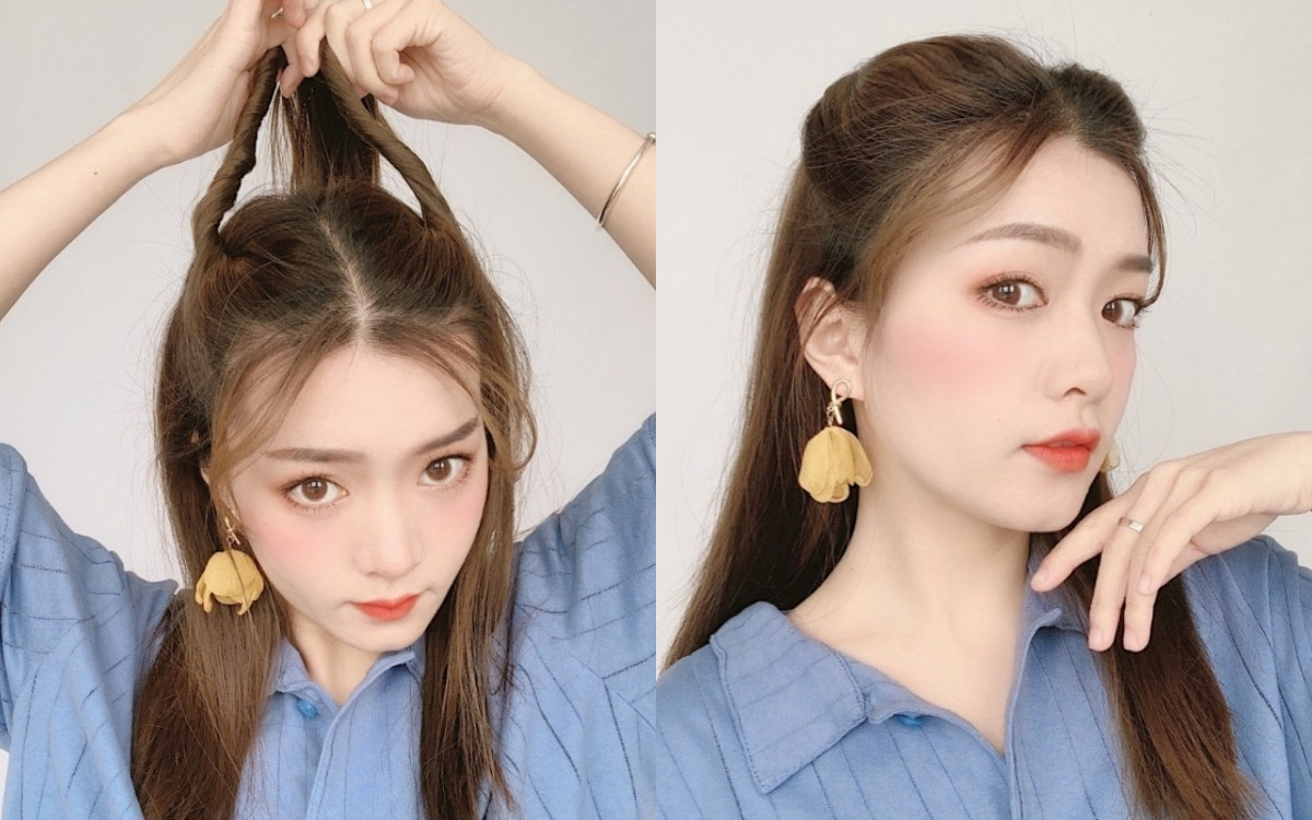 圓臉綁髮推薦:韓系半頭、半紮公主頭