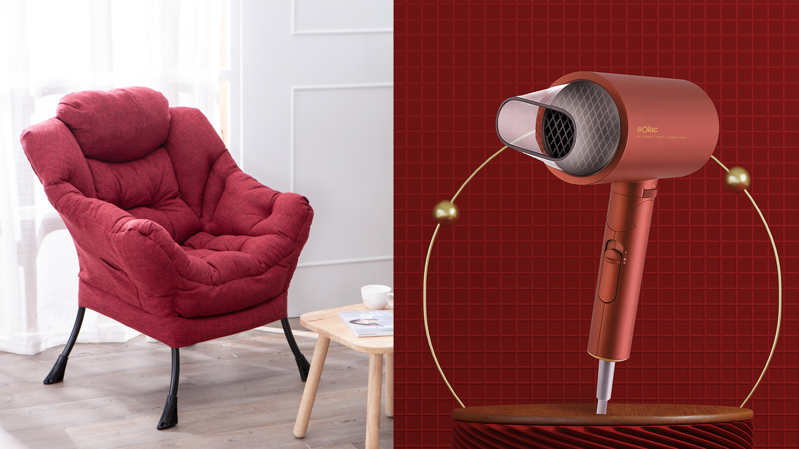 開運紅色系家具家電推薦 4. Solac 負離子生物陶瓷吹風機-紅
