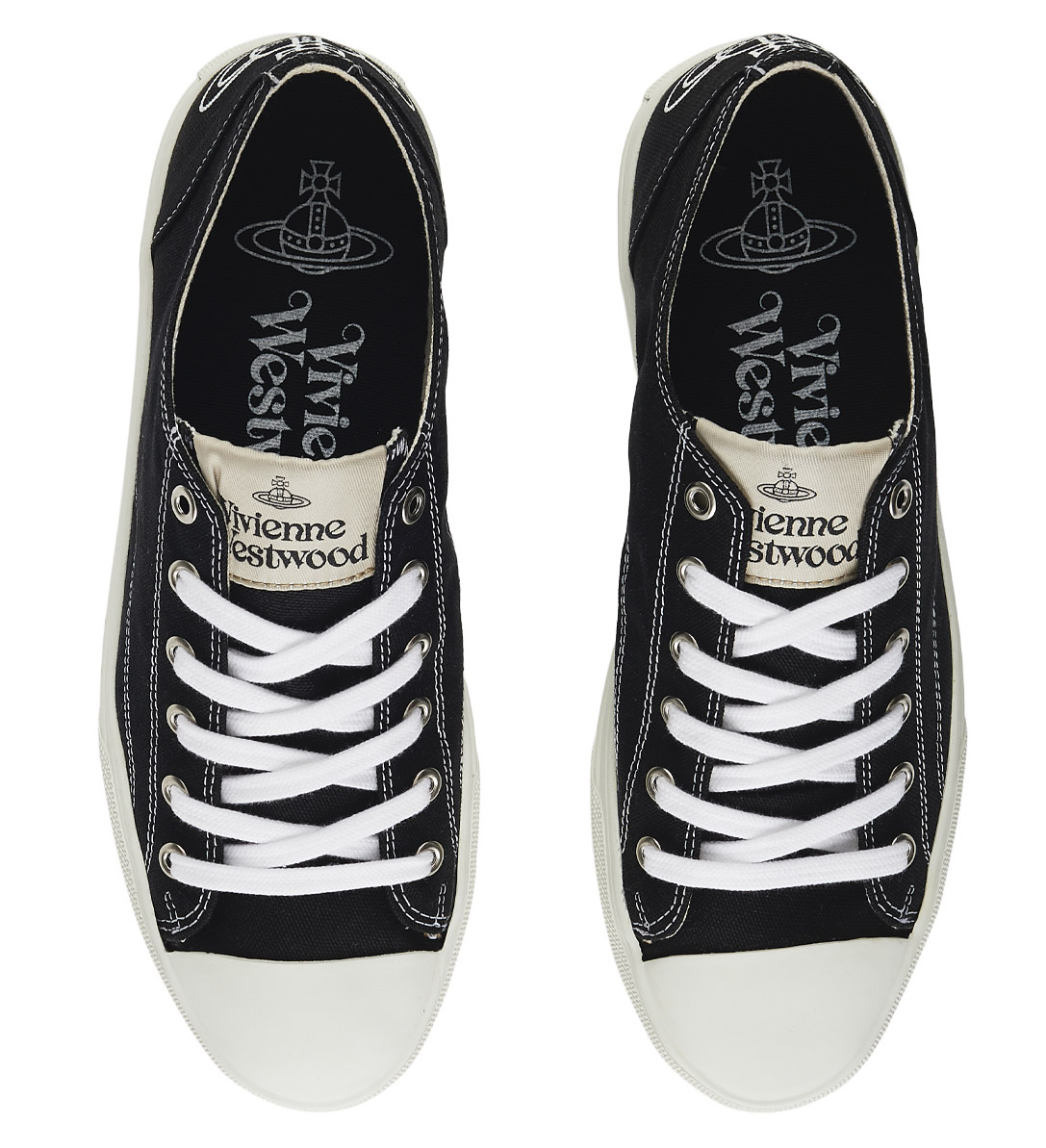 這雙黑色帆布鞋的定價同樣也是走佛心來著路線,不到萬元的價格只比一般常見帆布鞋款貴個幾千塊,卻能擁有精品等級的童趣設計。如果單從鞋款正上方或側面看這雙鞋,乍看之下會以為是一雙基本款黑白帆布鞋,但鞋後跟的醒目大Logo完美展現出Vivienne Westwood的叛逆態度。