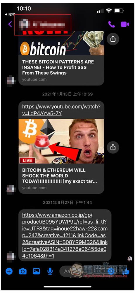 以 iOS 為例,打開 Messenger 後,點擊上方對方的頭像: