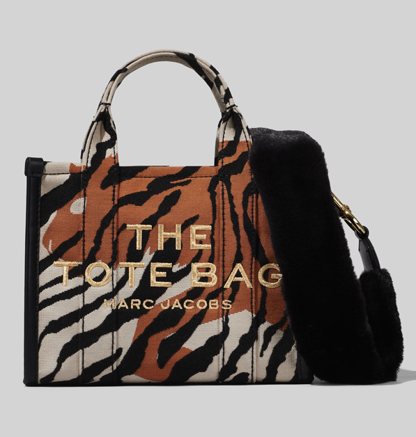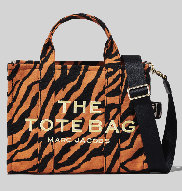 Marc Jacobs輕盈又實用的帆布包,有著大大小小的尺寸,可說是品牌之中,買氣最夯的熱銷單品之一。此次別因應虎年而換上橘、黑雙色的虎紋印花,可說是一揹上就讓你立刻成為眾所矚目的焦點;小尺寸的托特包側邊和上方袋口使用黑白虎紋設計,撞色效果更顯潮流;迷你尺寸的托特包則使用橘色勾勒出老虎側影,映襯黑白虎紋彷若叢林霸主般威武,特意使用毛茸茸的黑色肩揹帶,讓霸氣中又帶有軟萌感。