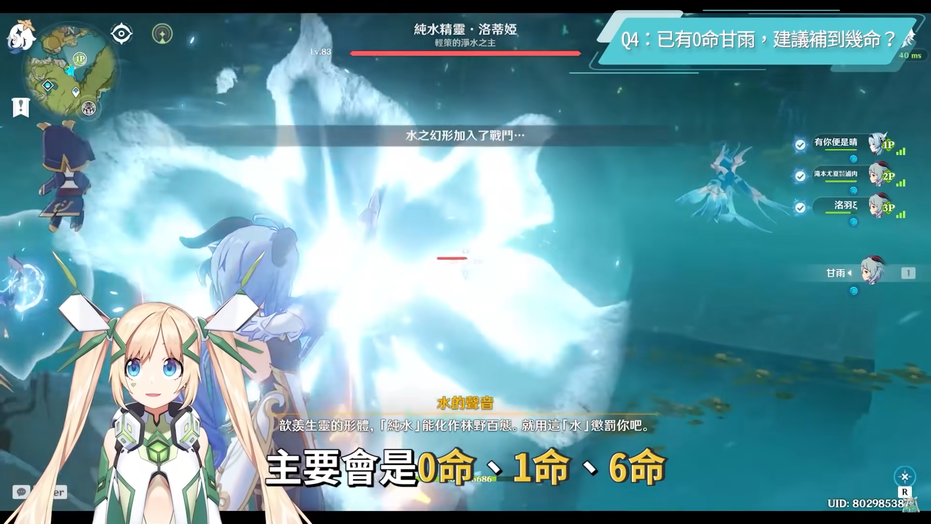 甘雨是十分強力的冰系主C,其強度和實用性在經過一年後仍然毫不遜色,洛洛直播到現在也是最常使用甘雨來幫各位玩家們挑戰各大週王和副本,目前洛洛也把最初始的帳號抽了滿命甘雨,睽違了一年這次絕不再錯過!因為甘雨是洛洛認為在所有角色中最為泛用,大世界探索、單挑BOSS、各種副本、深境螺旋等等,除了冰系免疫的敵人之外,甘雨所帶來的遊戲體驗非常非常好,人形歸終機真的實至名歸。