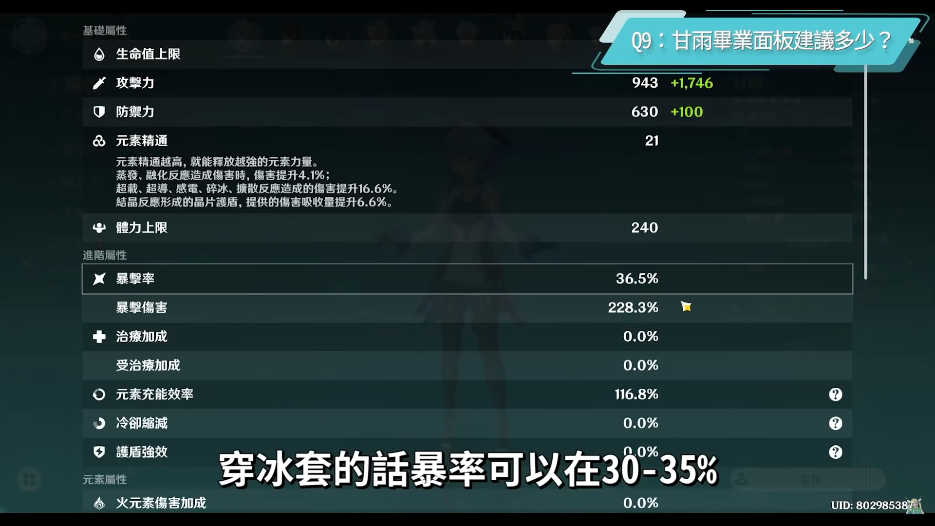 Q9:甘雨畢業面板建議多少?
