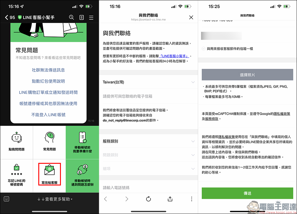 假如 LINE 客服小幫手的各種功能依然無法解答使用上的問題,那麼就點選「寫信給客服」尋求客服人員來解答囉!不過筆者建議,各位能直接先透過客服小幫手上述介紹的各項功能,應該就能解決快速使用上的問題,除非問題真的試了半天還無法排除再發信尋求客服人員解答。