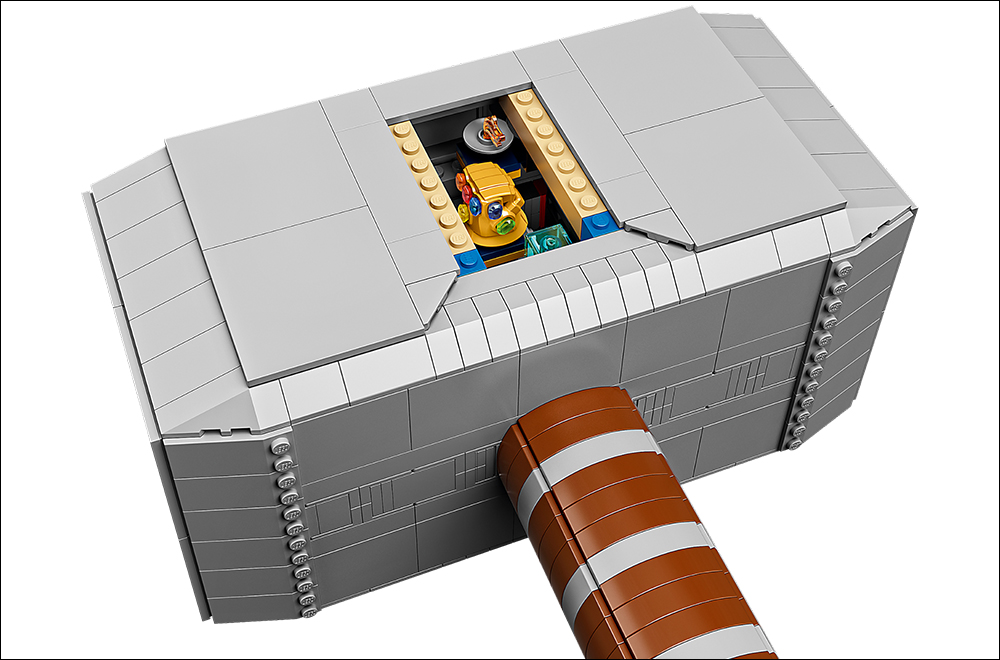 除了樂高版雷神之鎚的外觀忠實還原大家的想像,槌頭內也有迷人的小機關。