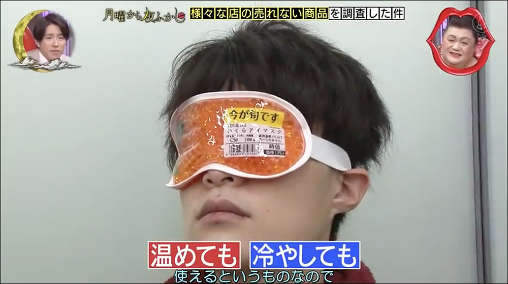 這款眼罩可進行冰敷和熱敷兩用,眼罩的外觀就像是超市生鮮鮭魚的包裝一樣,連上面的標籤也還原相當真實。